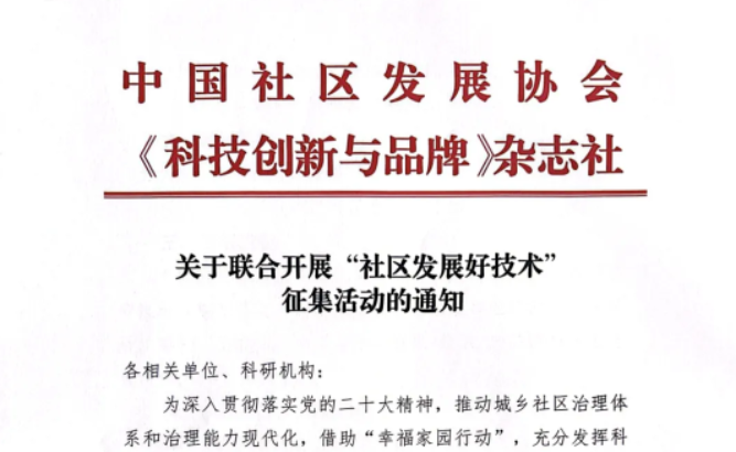為深入貫徹落實黨的二十大精神,推動城鄉社區治理體系和治理能力現代化,借助“幸福家園行動”,充分發(fā)揮科技創(chuàng)新在社區高質量發(fā)展中的引領作用,中國社區發(fā)展協會聯合《科技創(chuàng)新與品牌》雜志社,面向......